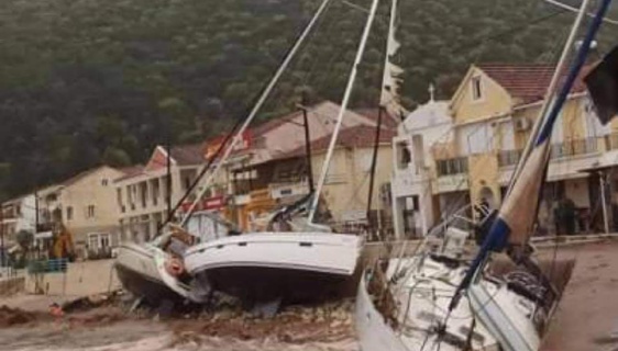 Εμφανή τα σημάδια από το πέρασμα του κυκλώνα Ιανό με το πρώτο φώς της ημέρας. Ενώ το φαινόμενο βρίσκεται σε